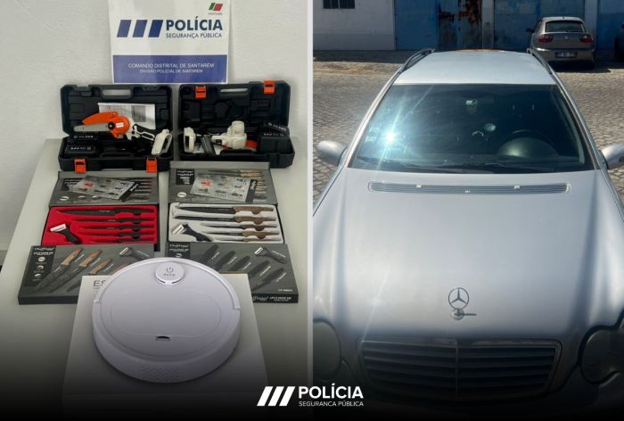 Aos dois detidos foi apreendido um aspirador robot inteligente, duas motoserras de mão, elétricas, e quatro) conjuntos de várias facas e respetivos faqueiros.