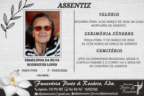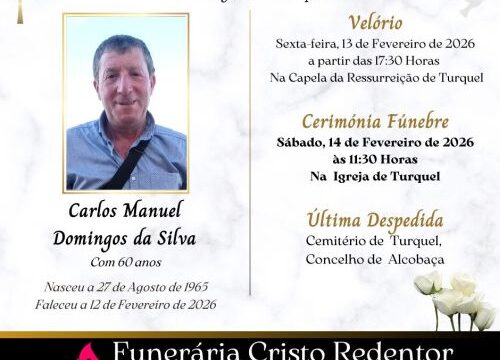 A cerimónia fúnebre realiza-se Sábado, 27 de Dezembro de 2025, às 16:00 horas, na Igreja de Turquel, seguindo para o Cemitério de Turquel, Concelho de Alcobaça.