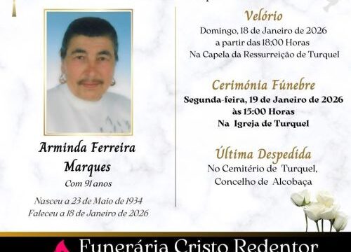 A cerimónia Fúnebre realiza-se Sábado, 06 de Dezembro de 2025, às 12:30 horas, na Igreja da Misericórdia de Rio Maior, seguindo para o Cemitério de Rio Maior, Concelho de Rio Maior.