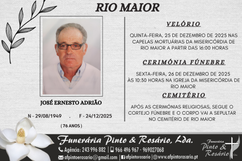 O funeral realiza-se quarta-feira, 28 de janeiro de 2026, às 10:30 horas, na Igreja da Misericórdia de Rio Maior.