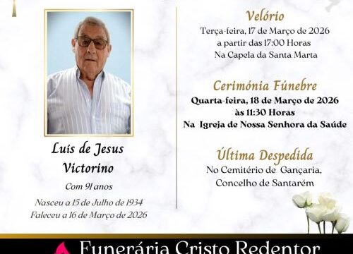 O funeral realiza-se sábado, 09 de agosto de 2025, às 10:00 horas, na Igreja da Misericórdia de Rio Maior.